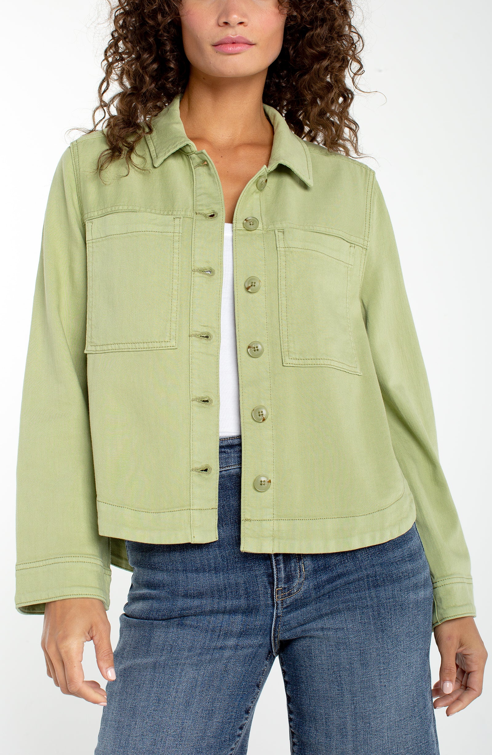 Level up your casual look with this High/ Low Denim Shacket—a fun twist on your classic jean jacket! With a playful hem that dips lower in the back, it adds flair and movement to every step.