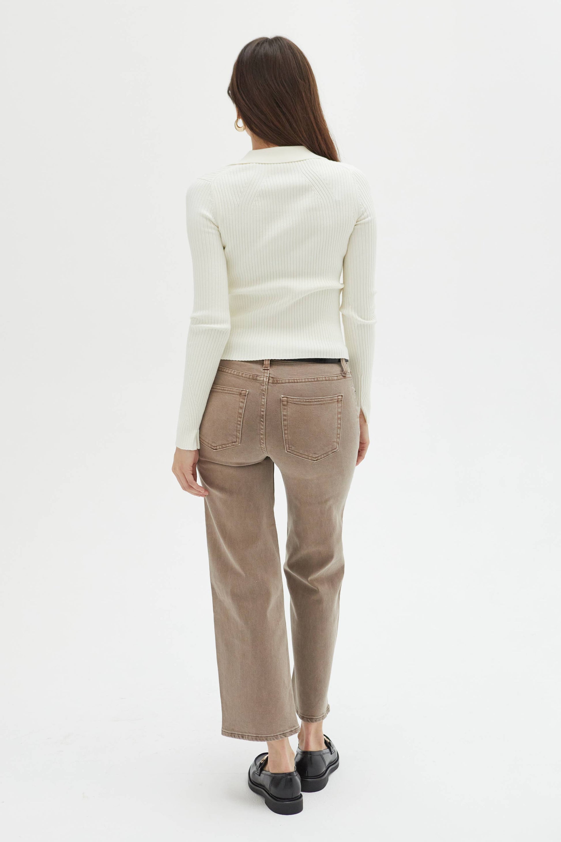 THE FIT: Mid rise, fitted through the hip with a zipper fly––detailed with a finished hem and ankle slit.