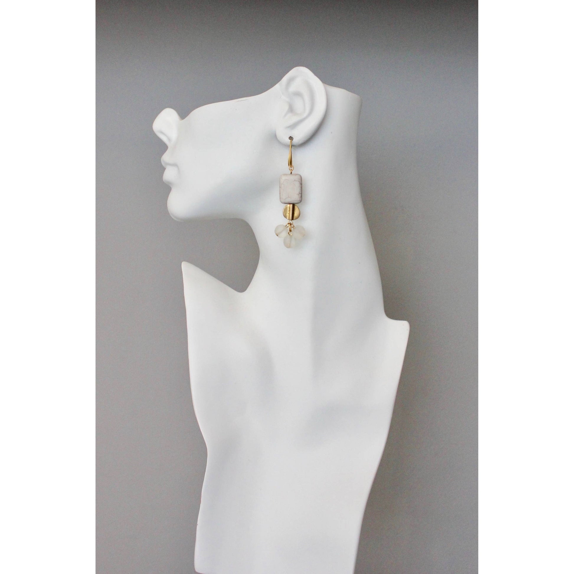 18 carat gold plated brass hooks with magnesite, brass, and glass. 2.75 inches. Perfect gift for Mother's Day, birthdays or graduations.