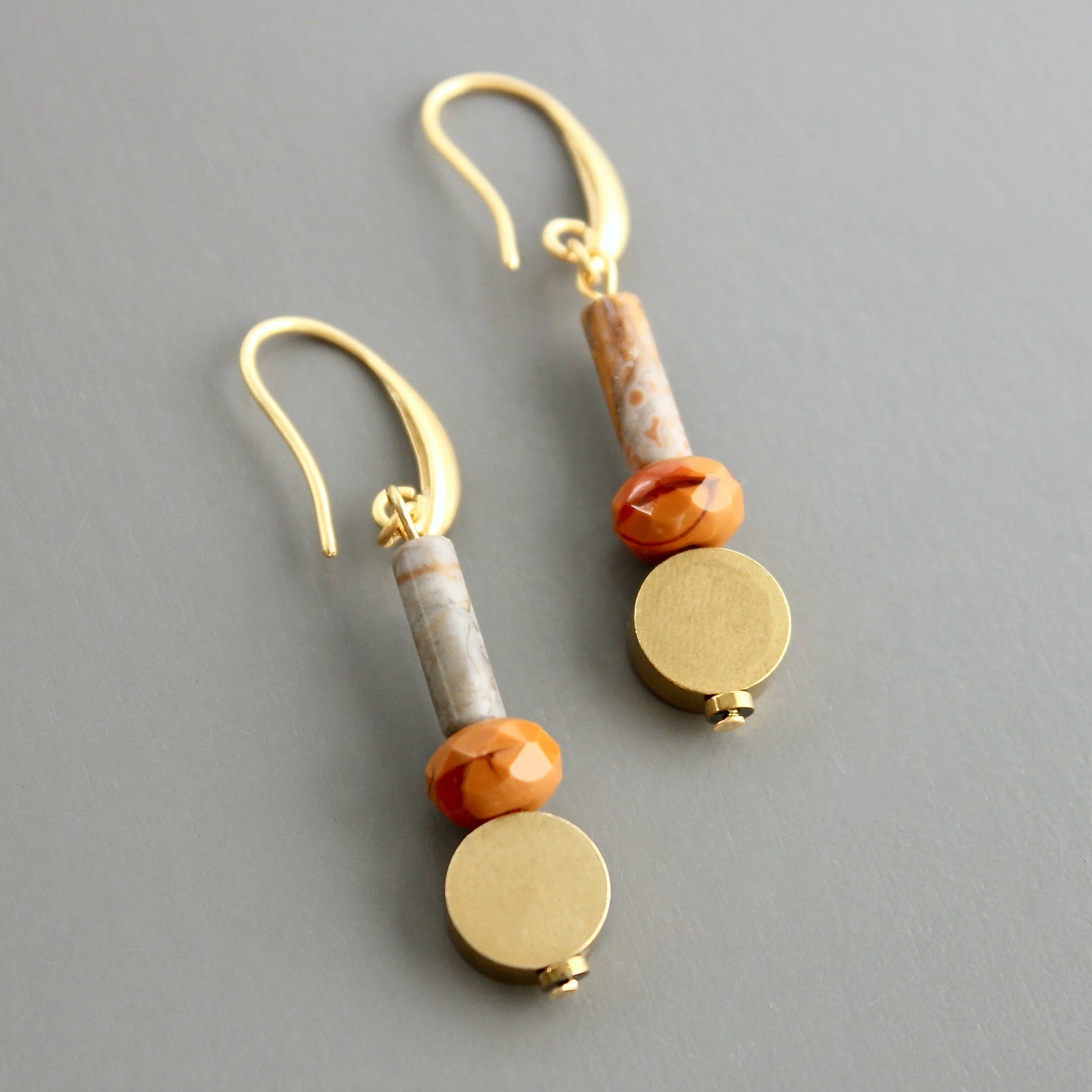 18k gold plated brass hooks with jasper, glass, and brass. 2.25 inches from top of hook.