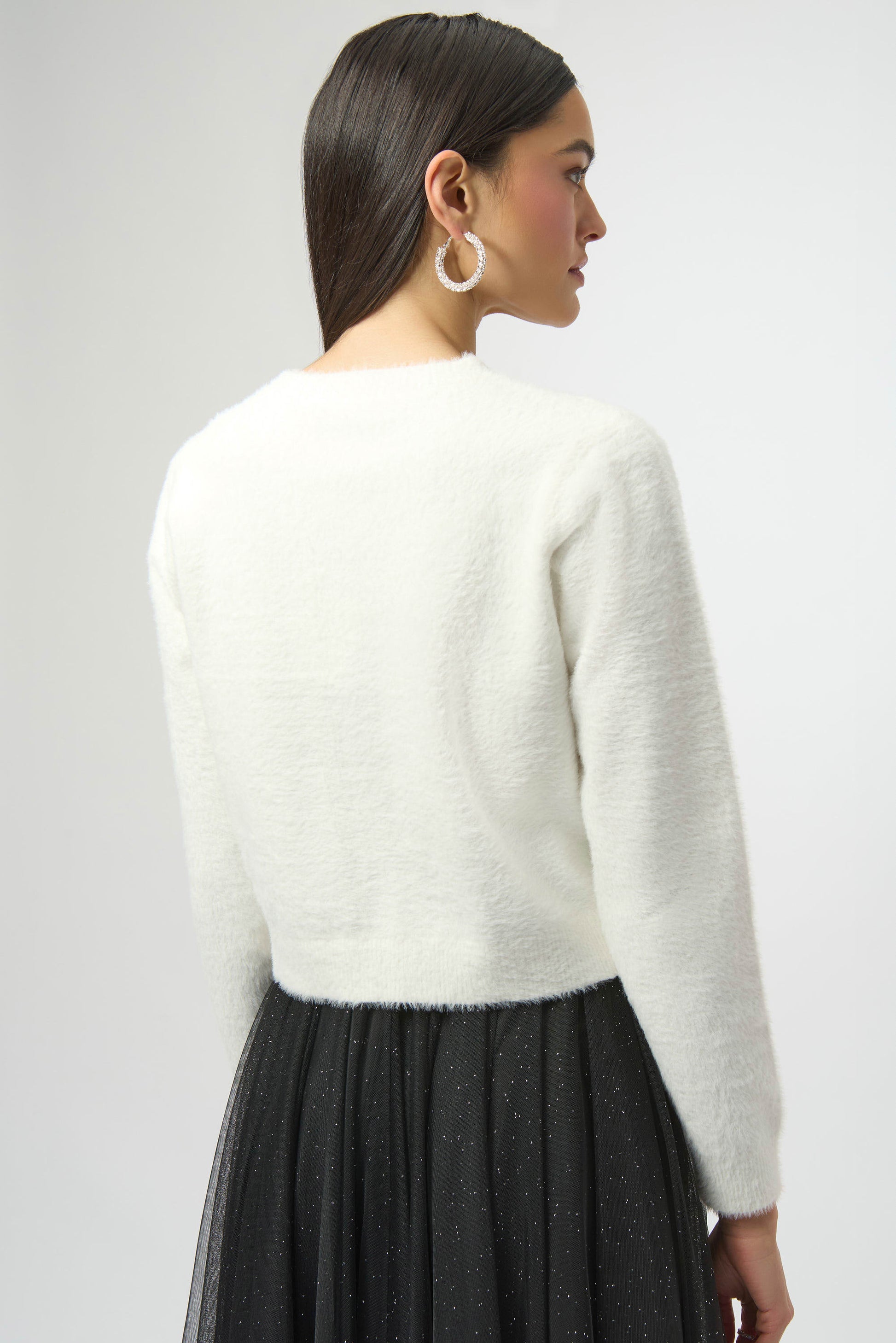 Feather Yarn Cardigan with Rhinestone Bow