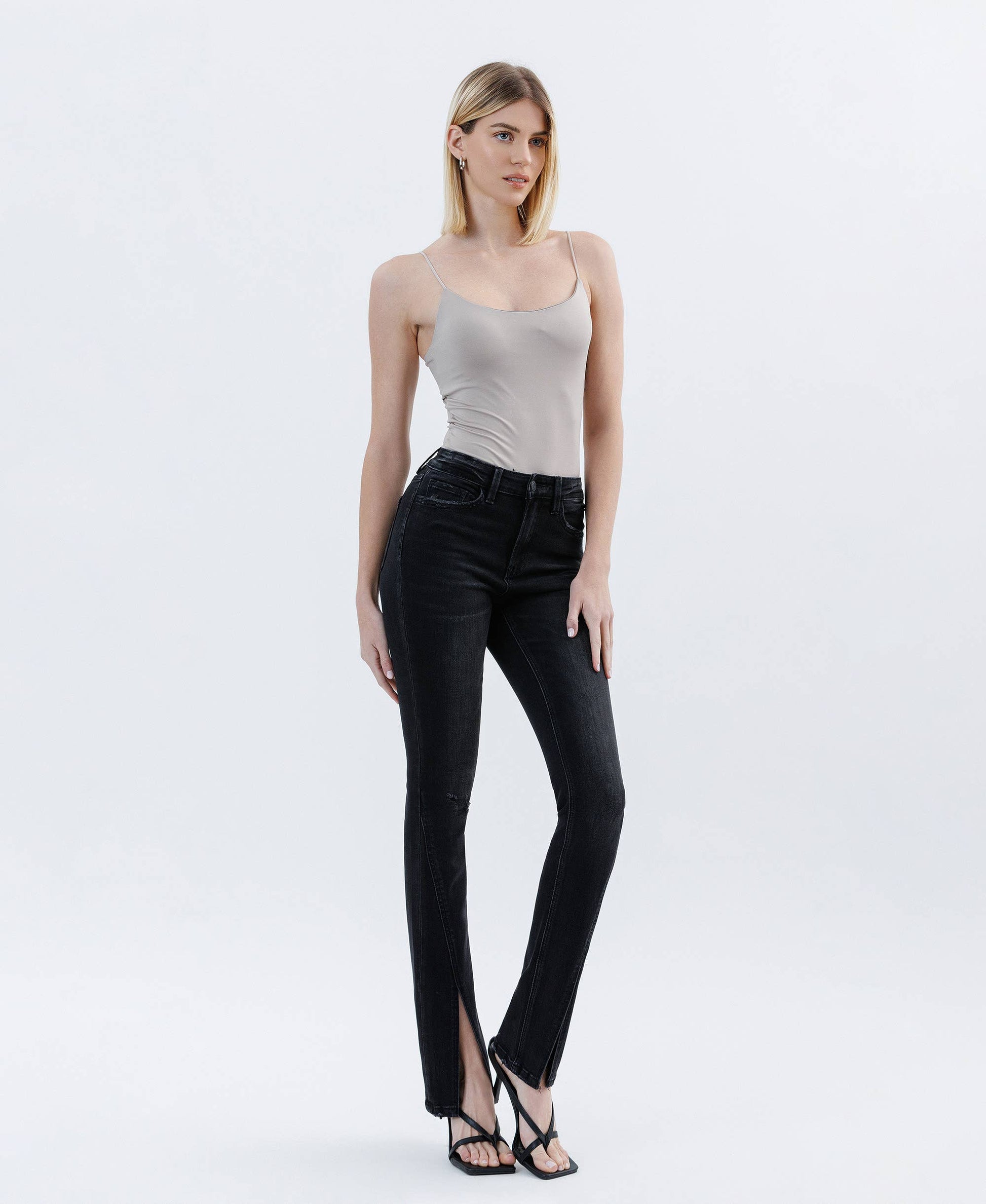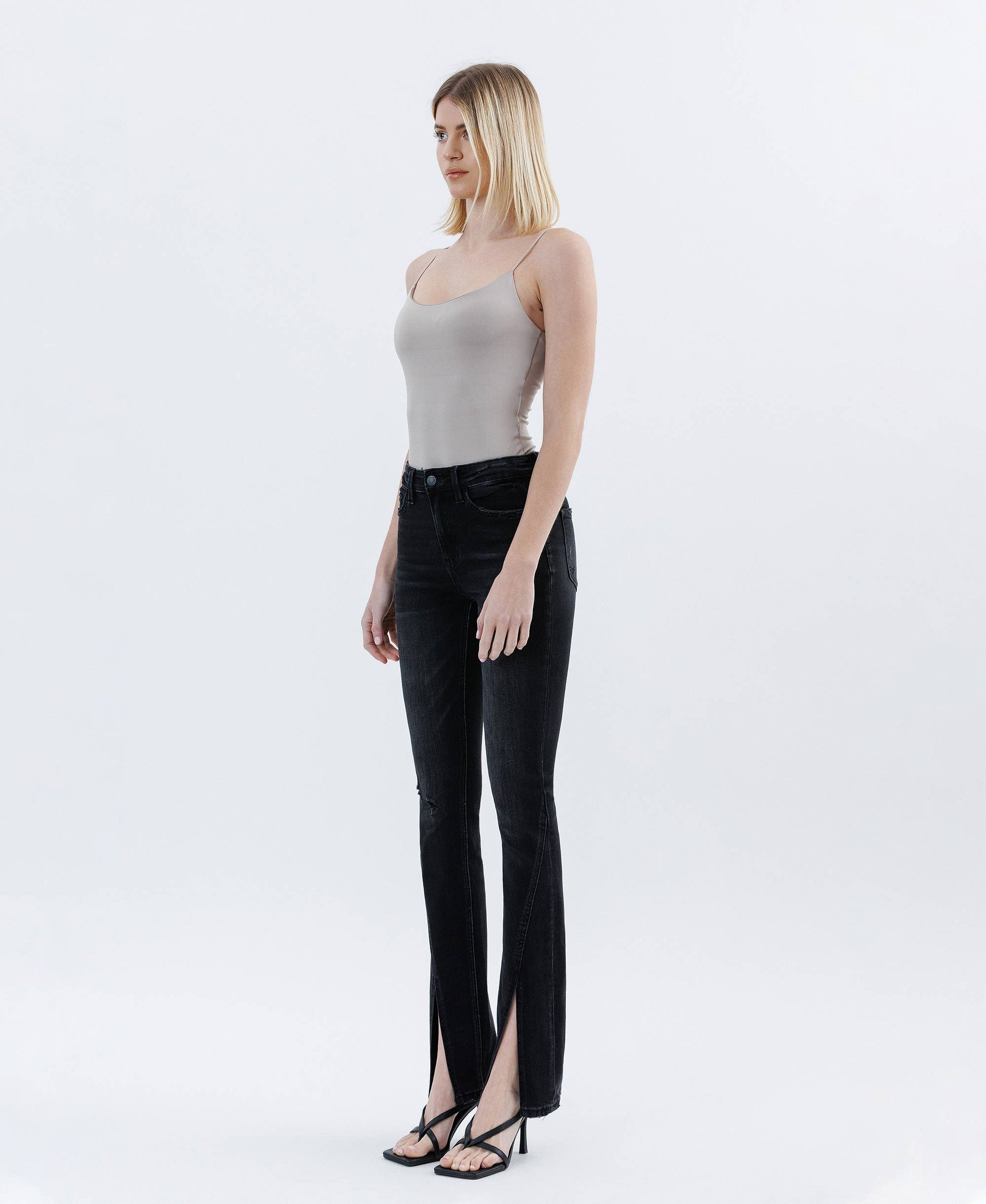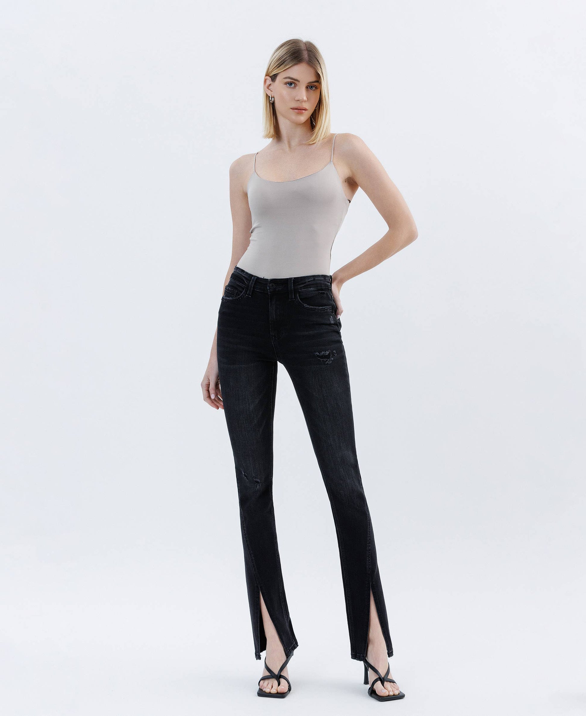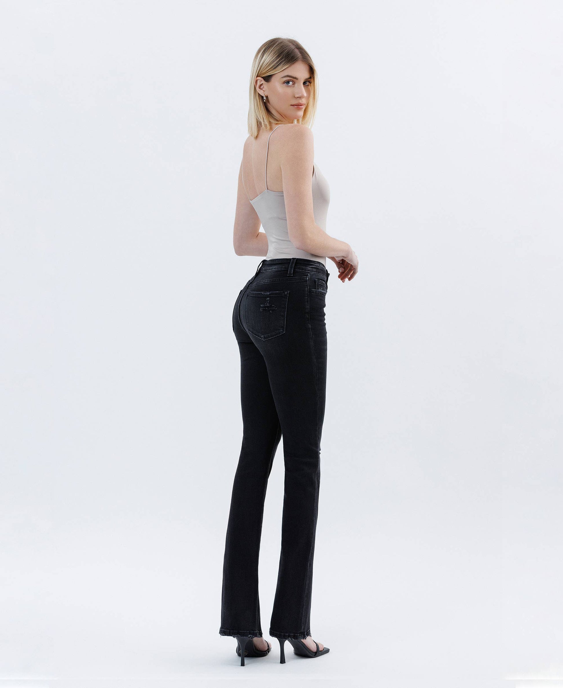 Introducing the Veronica Slit Bootcut—your new go-to for effortless edge. These high-rise beauties feature a playful slanted slit that adds just the right amount of attitude, paired with distressed detailing for that perfectly worn-in vibe. Crafted from comfort stretch denim, they hug you in all the right places with a sleek slim bootcut silhouette that elongates your legs. The 10" rise sits perfectly at your natural waist, while the 34" inseam and 13" leg opening create a flattering, modern fit. Dress them up or down—these jeans are ready for anything.