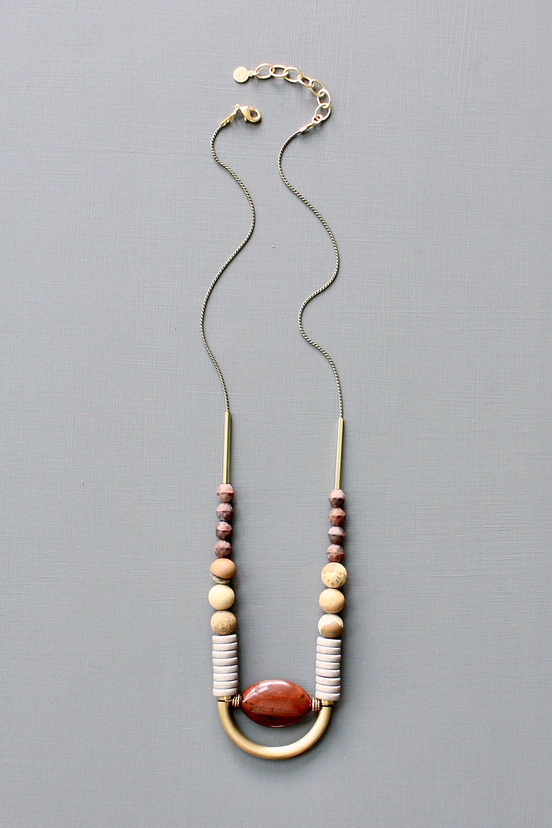 23” necklace with glass, jasper, and magnesite. 2 inch extender