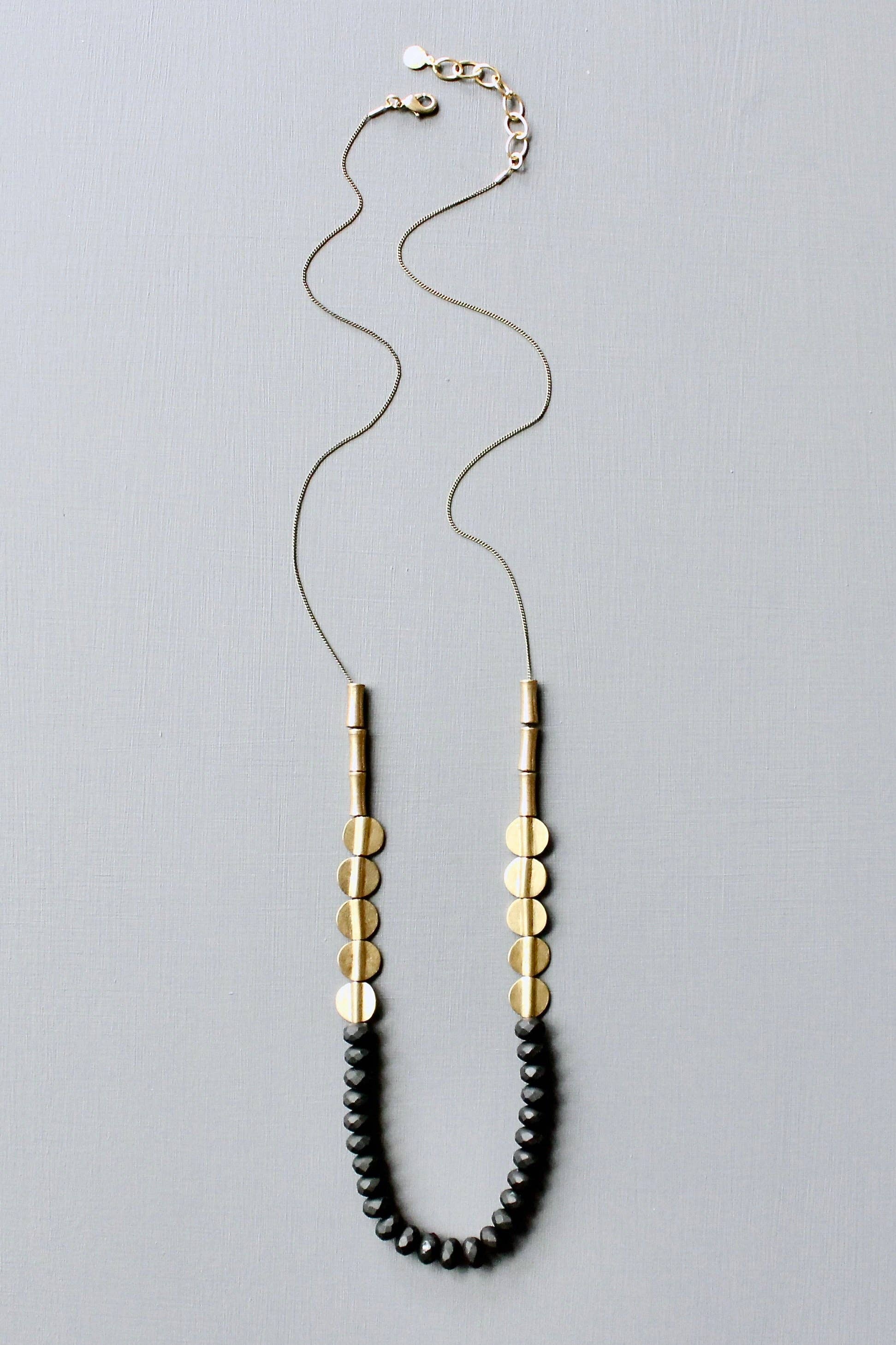 30” necklace with brass-ox chain and glass. 2 inch extender