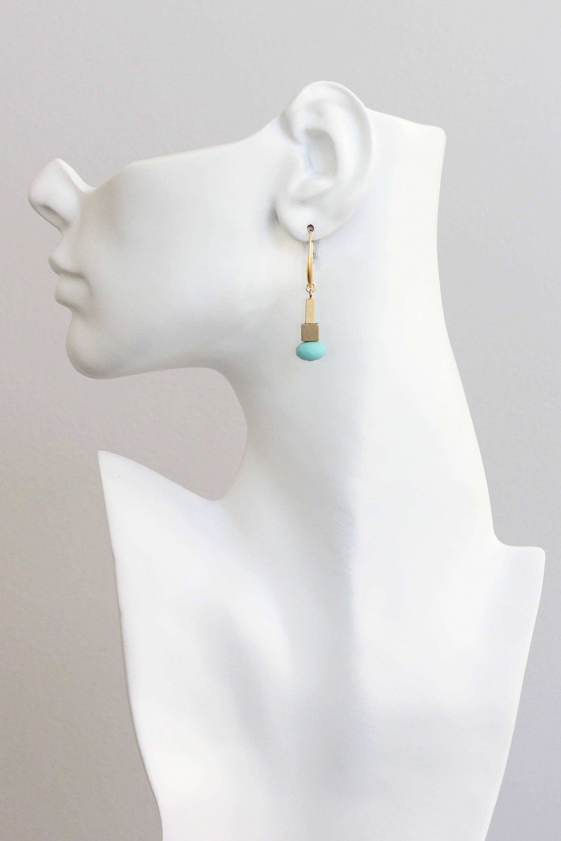 18k gold plated brass hooks with Czech glass and brass beads. Each earring weighs .10 oz. and measures 1.625 inches in length from top to bottom.