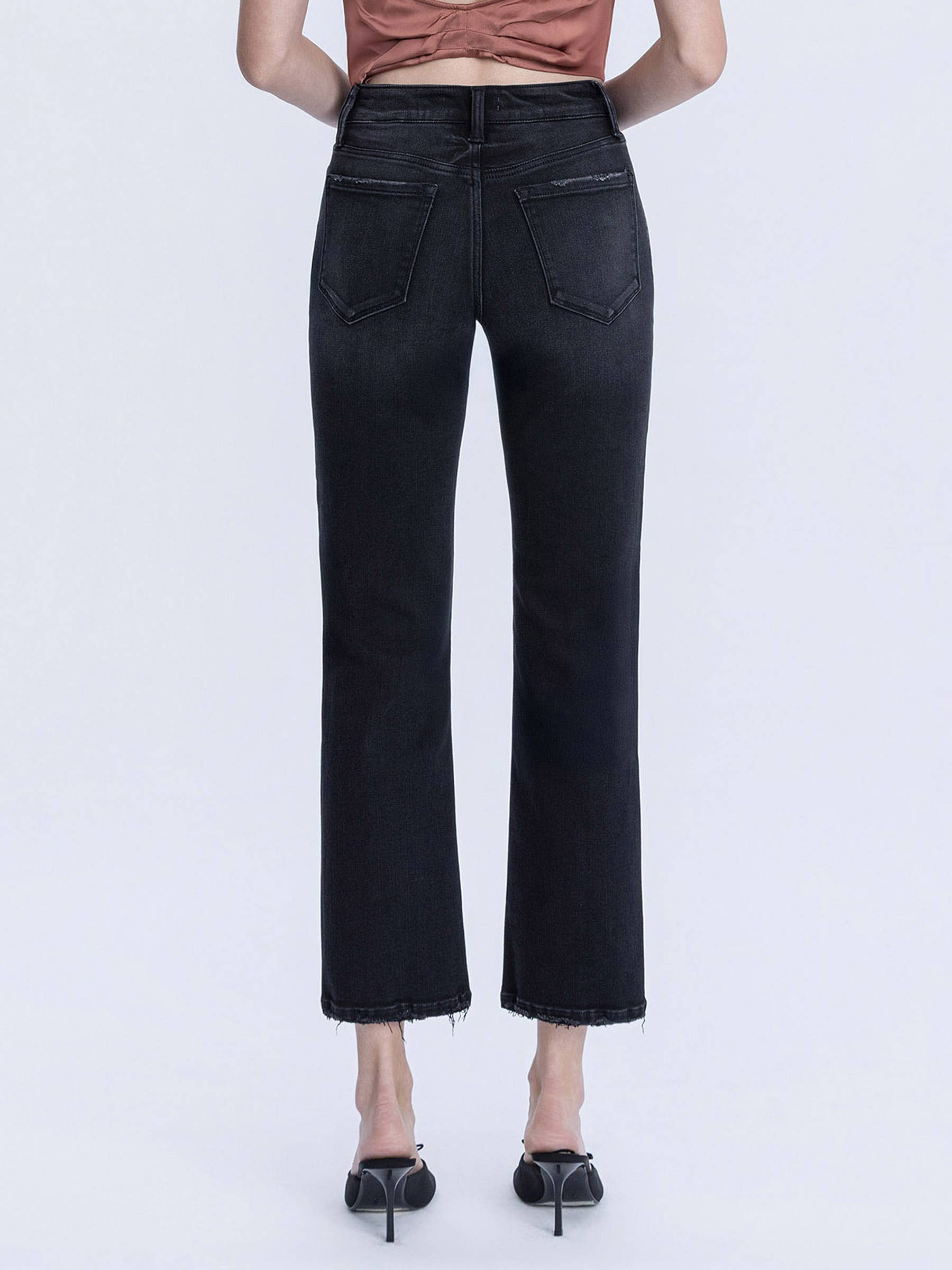 Introducing the Olivia—your new go-to pair of black ankle straights that actually feel as good as they look. Built with a comfortable stretch denim blend, these jeans sit at a flattering mid-rise and feature a classic five-pocket design with just the right amount of edgy, lightly distressed detailing. Cut to a sleek straight leg that hits right at the ankle, they're the perfect length for showing off your favorite shoes. Rise: 9½" | Inseam: 28" | Leg Opening: 16" | Model wears size 26 at 5'10".