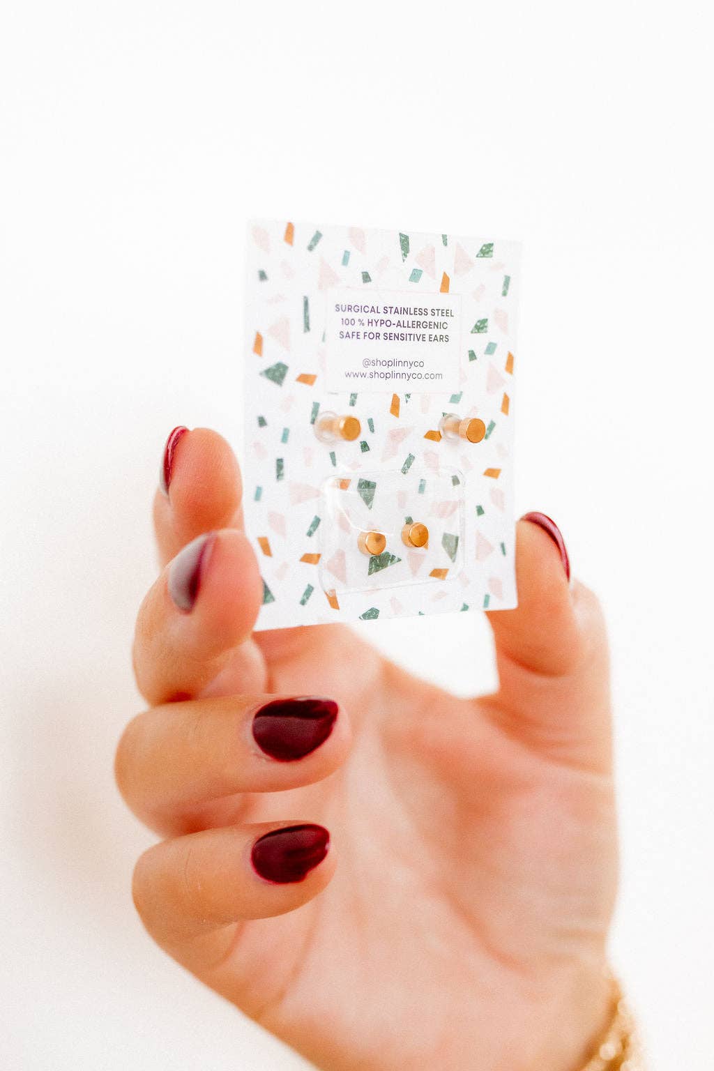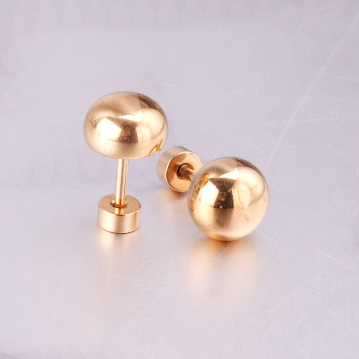 Make a bold yet refined statement with the Screwback Stud Earrings - Vera Round 8mm. These gold flat-back ball-shaped micro-studs offer a timeless, minimalist design that’s perfect for any occasion. Crafted from high-quality surgical-grade stainless steel, these earrings are durable, lightweight, and waterproof, ensuring they’re made to last. The innovative screwback design guarantees a snug and secure fit for everyday wear. Ideal for both adults and kids, these hypoallergenic and nickel-free studs offer comfort and style that can be worn all day, every day.