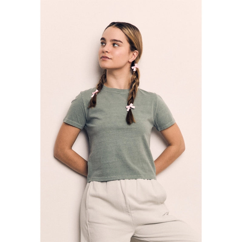100% MINERAL WASHED COTTON Our best selling standard tee, cropped right at the waistline for that effortless fit. An everyday essential you will reach for every season. Perfect on its own or as a layering piece.